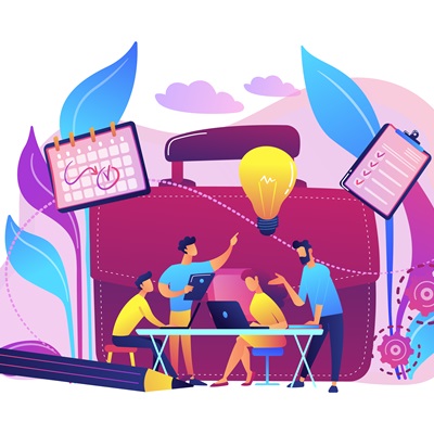 Collaboration concept vector illustration. Publicado por martin.zanoniani Tamaño completo 400 × 400 pixels Business team work together with laptops and light bulb. Collaboration, collaborative problem solving and partnership concept on white background. Bright vibrant violet vector isolated illustration Imagen anterior Imagen siguiente
